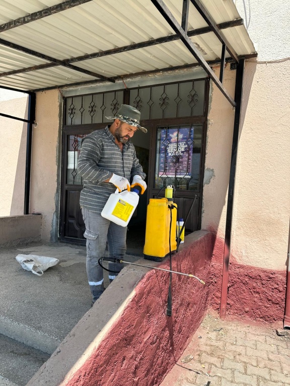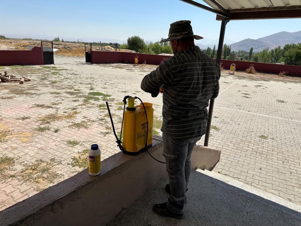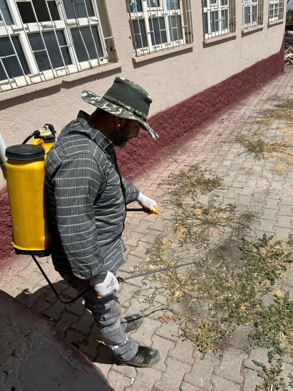 Okul Aile Birliği Başkanımız Mikail BAYIR okulumuz bahçesinde ilaçlama yapmıştır.